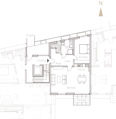 Schlafzimmer und Bad sind nach Norden gerichtet. Ein kleiner Abstellraum schafft flexible Platzlösungen.