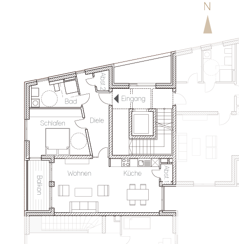 BEREITS VERKAUFT!Im Obergeschoss befindet sich mit einer Fläche von 70 m² eine großzügige, nach Westen ausgerichtete 2-Zimmer-Wohnung.